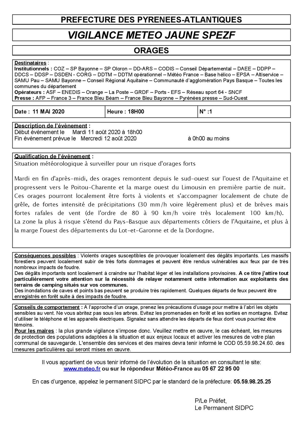 Alerte préfecture - Orages